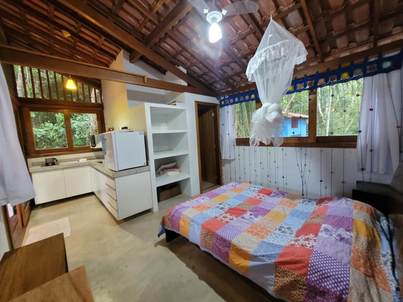 Situated in the vicinty of Rio do Peixe Grande Beach in Cumuruxatiba, Chalé Ibirapitanga is a chalet, which features a garden and terrace. This beachfront property offers access to a balcony, free private parking and free WiFi.