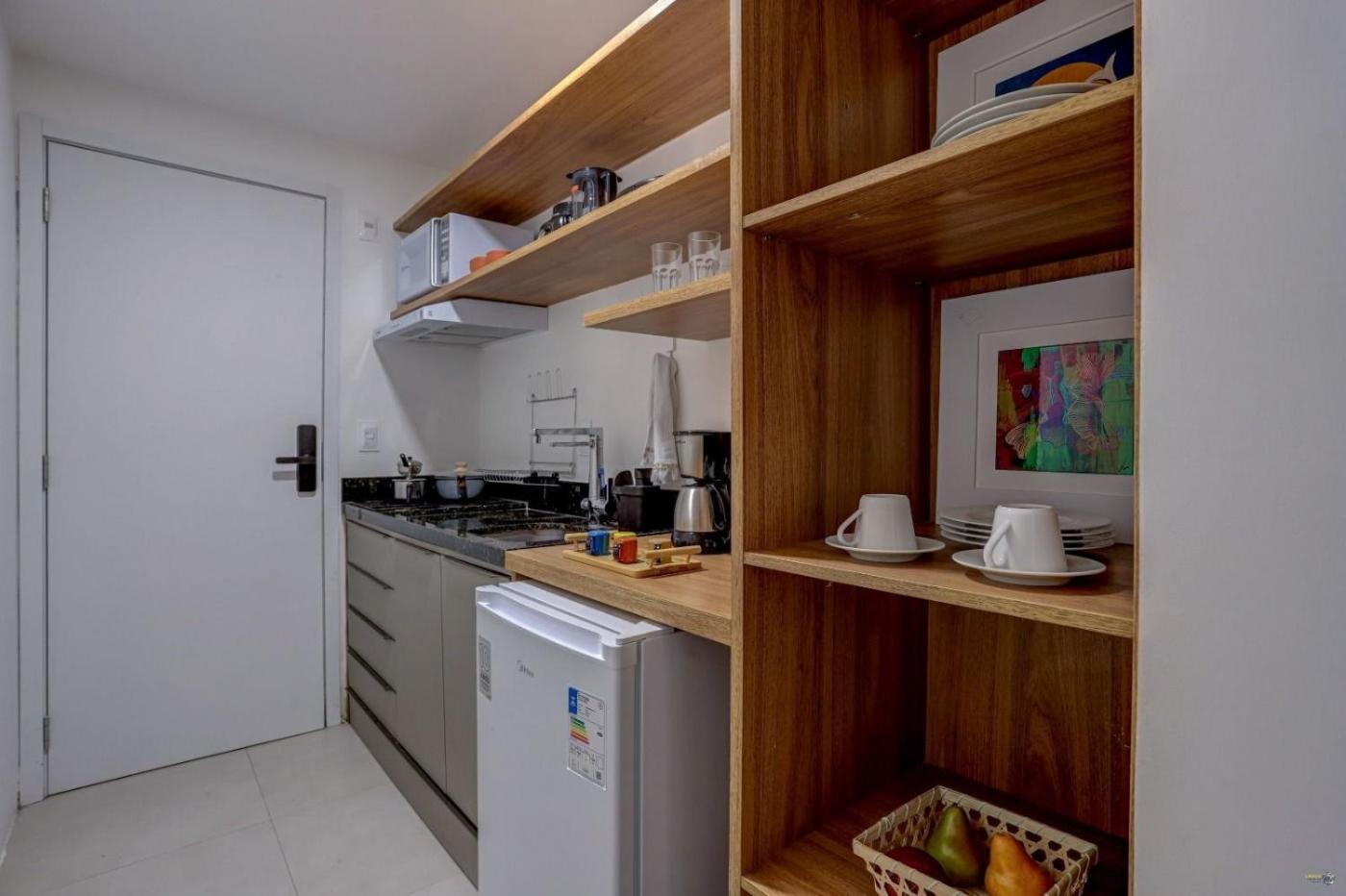 Studio Apartment. In the kitchen, guests will find a stovetop, a refrigerator, kitchenware and a microwave. This apartment is air-conditioned and features a seating area with a flat-screen TV, a washing machine, a coffee machine, a dining area, as well as a wardrobe. The unit offers 2 beds. ;