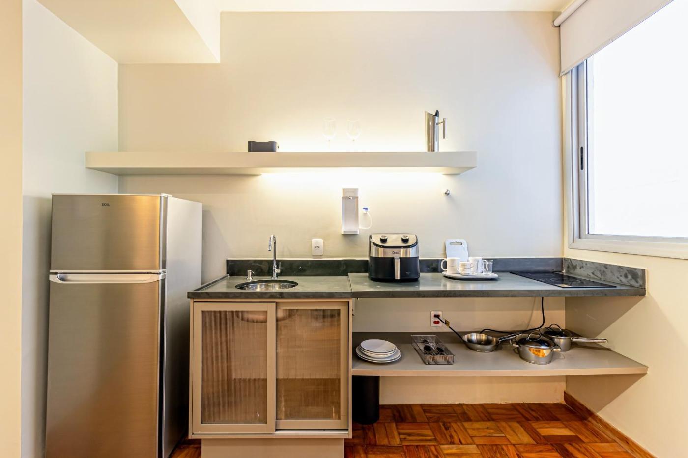 Standard Studio. The well-fitted kitchen features a stovetop, a refrigerator, kitchenware and an electric kettle. The studio offers air conditioning, a seating area, as well as a private bathroom featuring a shower and a hairdryer. The unit offers 1 bed. ;