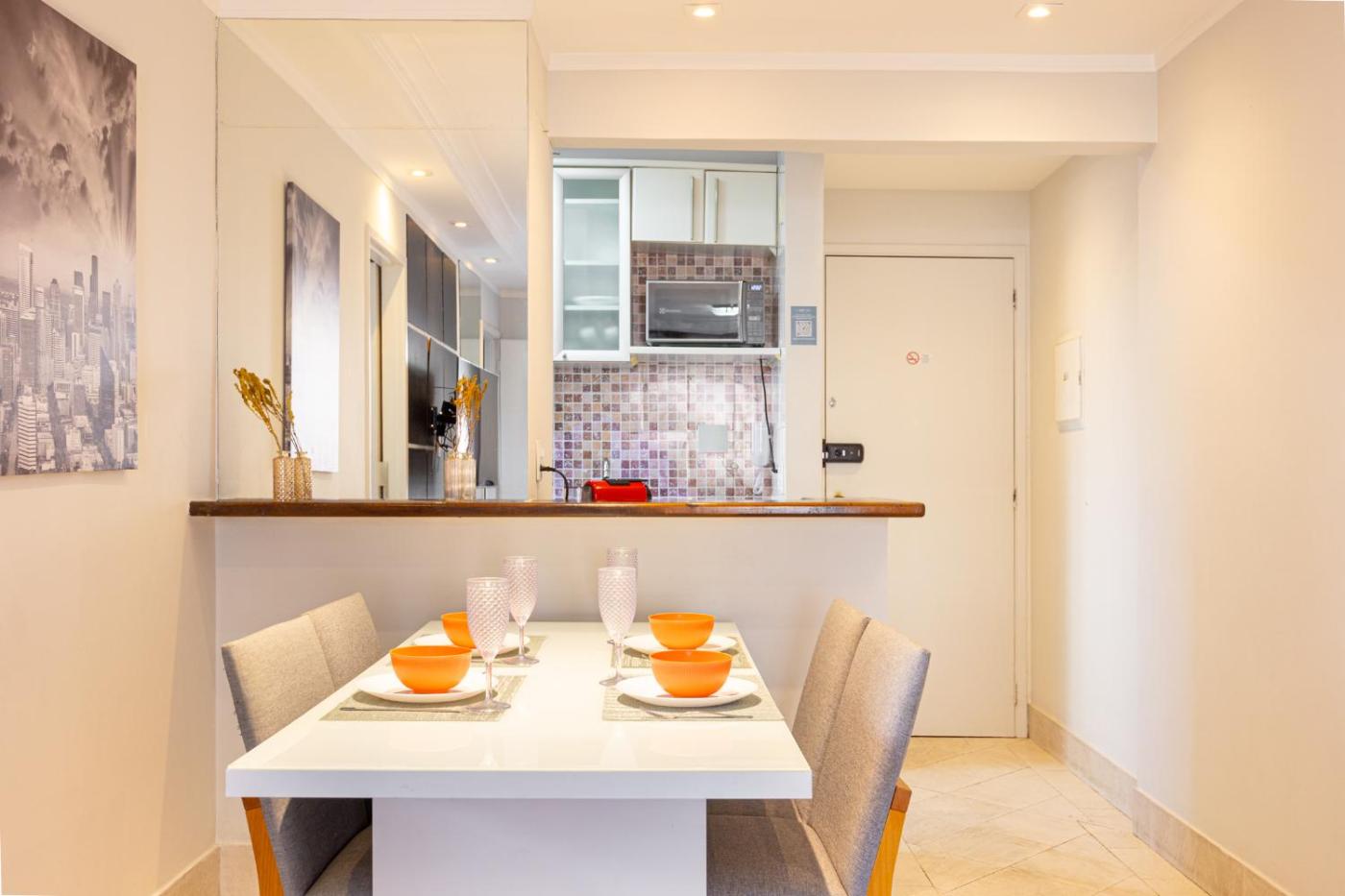 Easy Star - Solar Alvorada - Apartamentos completos com vaga na Vila Olímpia is located in the Itaim Bibi District district of Sao Paulo, 4 km from Ibirapuera Park, 5.1 km from Ciccillo Matarazzo Pavilion and 6.2 km from MASP Sao Paulo. This apartment provides free private parking and a 24-hour front desk. The apartment features an outdoor swimming pool, sauna and a lift.